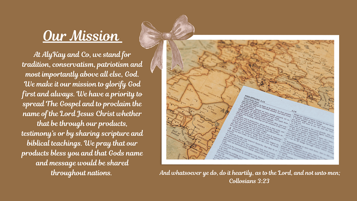 Being born and raised in the South-East, country living has always been in my blood. My regard for southern and traditional living has since flourished which is why I want to share it with you too! From horses and boots to turquoise jewelry and fringe jackets, I appreciate all things western! I also like flowers, pearls, and coastal inspired jewlery so you may see that here and there in my work too! However, my roots and appreciations are NOT my main inspiration for this business. I have a passion and priority to glorify GOD FIRST and ALWAYS in everything I do. One of my many favorite Bible verses is Colossians 3:23 which says "And whatsoever ye do, do it heartily, as to the Lord, and not unto men." This Bible verse is what I want my business to reflect. I want this business to be for the glory of the Lord Jesus Christ above all else. All in all, I pray that God would use me and this business to glorify and spread His name first, always and forever. 🤍